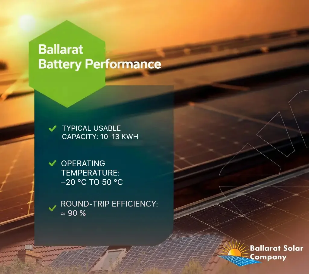 Ballarat’s winter lows around 0 °C mean cold-weather performance matters. Most modern lithium-ion systems are designed for a wide range of conditions: